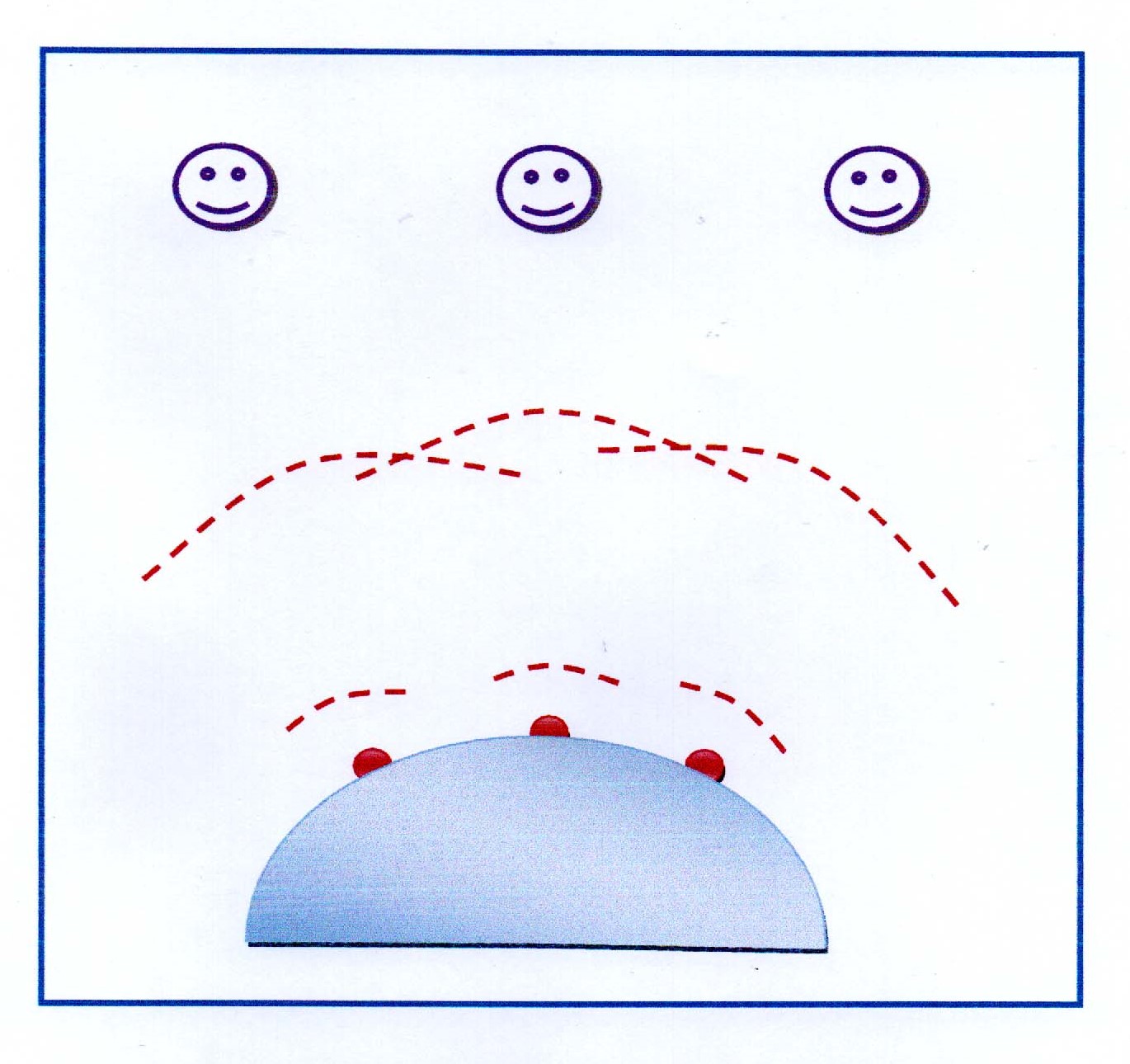 Obviously each student in the group will be able to see the 3 dot pattern on the ball and that is because the retina (the sensor) of each eye receives three distinct hits. And we can explain this by the same holographic mechanism discussed above. We know that each dot emits energy in the form of photons and each photon (or shower of photons) that gets emitted generates a wave front in the Ether medium which pervades this entire Universe. Each wave front then spreads (or gets scattered) in all directions and hits all the sensors (retinas). Thus each retina gets three separate hits and recognises the 3 dot pattern on the ball. Of course not only our retinas but every inch of our skin also receives the same 3 dot energy pattern. And interestingly this is the same energy pattern that our skin receives when hit by a 3-point object. So logically speaking, we must all feel being bombarded by 3-point objects whenever we stand in the vicinity of a 3-dot object. But why isn’t that we experience this odd phenomenon? The reason is that our skin is not sensitive enough to pick up these subtle light energy patterns unlike our retina.